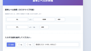 基準レベル計算機 使用方法説明書1. 概要基準レベル計算機は、建設現場における異なる基準レベル(KBM、GL、1FLなど)間の高さ変換を簡単に行うためのツールです。プロジェクトごとに基準レベルの名称と関係性をカスタマイズでき、一つの基準値を...