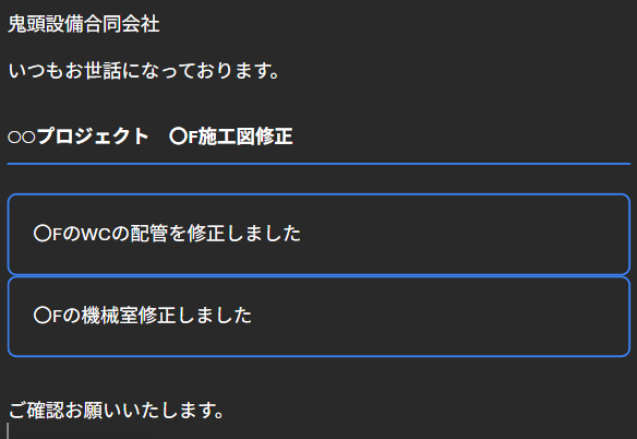 宛先名、挨拶文、結びの言葉を設定可能。ビジネスメールに適したフォーマットで出力されます。